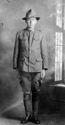 He spent his time, nine months, I believe, at Camp Custer - near Battle Creek, Michigan. He had a goiter condition and could not be sent overseas to the front because of the use of gas over there. |